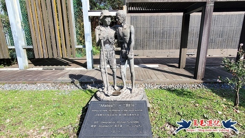 離開金福宮從瓜山國小操場旁小巷出金福宮牌樓左下車道瓜山橋過來,對面石階步道爬上即是戰俘營公園,設有紀念碑及雕像。