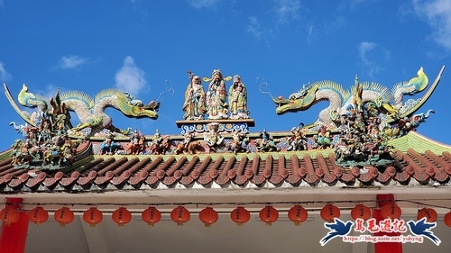 從民宅旁彩虹階梯爬上來到達勸濟堂,這是一座有百年歷史的廟宇,供奉關聖帝君,也是金瓜石地區的守護神。