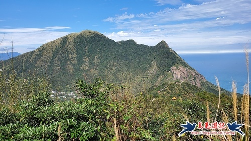 第一段上來後有短暫平緩腰繞山坡,緊接著第二段再度陡爬,回望身後可見基隆山雷霆峰及陰陽海景色,值此春暖花開之際,