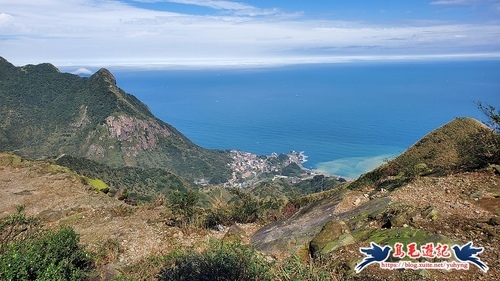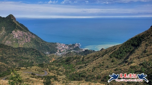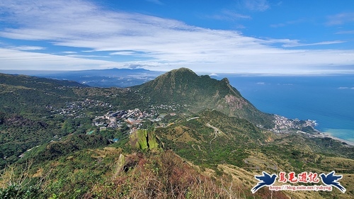 站在金瓜指起陽石旁空地,往下可俯瞰金瓜石九份聚落,往上可見茶壺山一隅,瞧瞧那一柱擎天的金瓜指(或名「金手指」),