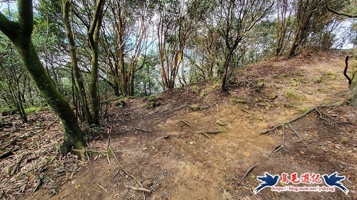 通過茶壺山之後至另一側,稜線步道可續通往半屏山出草山戰備道、燦光寮山,今日爬上一處小山頭後轉從右側叉路山坡下來,