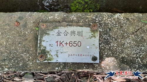 水圳旁每50公尺有看到台北市七星農田水利會製的「金合興圳」里程牌,據查,狗殷勤古道又名尾崙水圳步道。古道分為三段,