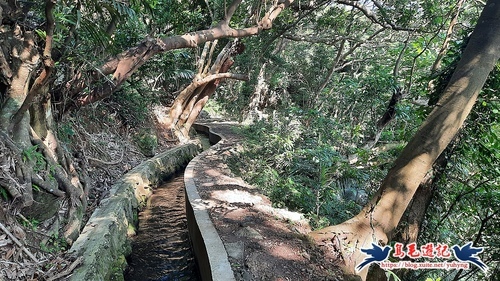 下至水圳步道後,右往永公路40巷另一登山口,取左往水圳頭,這條水圳路就是狗殷勤步道,可接往平菁街42巷,