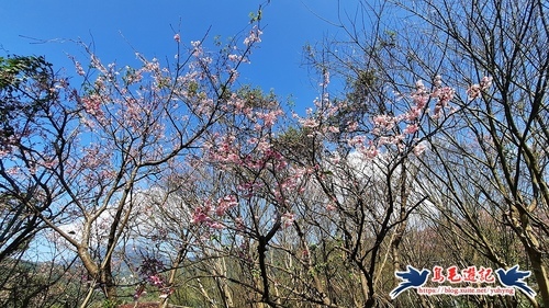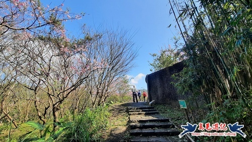 竹林步道陡峭石階經過涼亭後爬上櫻花林區,已見許朵遊客來賞櫻打卡拍照了,這處此時開始應該每天都很熱鬧持續到2月吧...