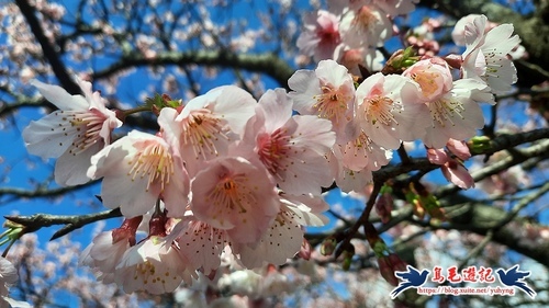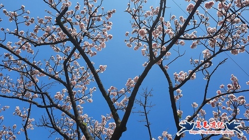 所以稱為「寒櫻」。目前這裡的花開還不到五成,預估再1-2週左右進入全盛開期喔。