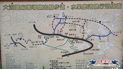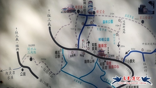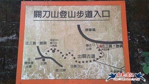 停車場對面是薑麻園桐花步道/出關古道十分崠步道入口,而關刀山步道入口需沿公路左下約700公尺處。今日三義天氣真不錯,