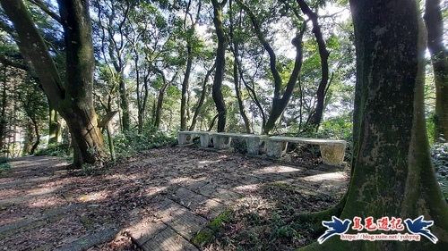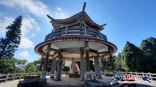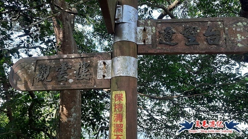 今日不計畫走十分崠步道,於此折回來時停車場,途中叉路往觀雲樓,是一座圓形+八柱(角)雙層涼亭,