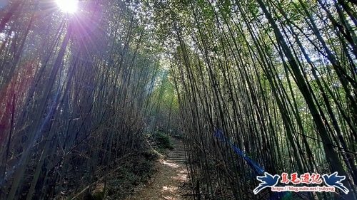 剛開始走一段起伏不大的土石路或階梯,綠竹林間透出朝陽耀眼的光輝,偶有桐花飄落在青苔上,帶著一絲淒美的哀怨...