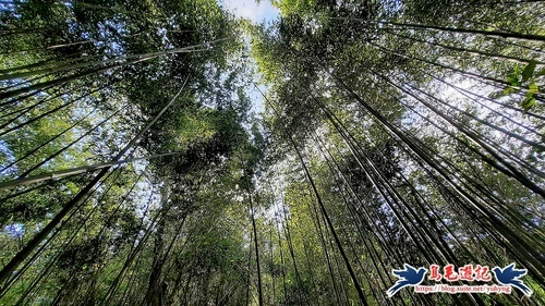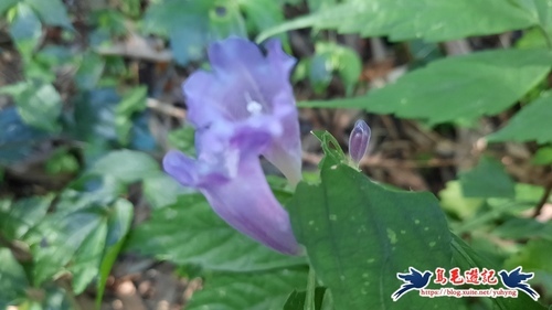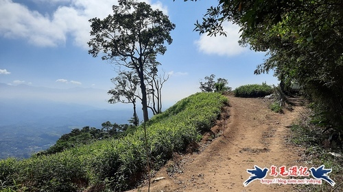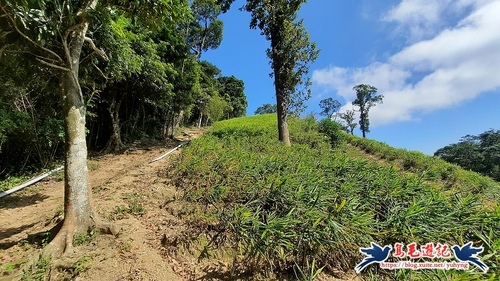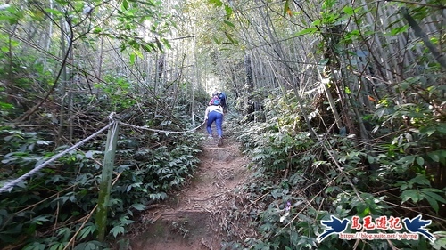 竹林山坡間遍生馬藍(大菁),紫色小花點綴山坡間,其葉片為客家族群中常用的藍色染料作物,此段陡坡奮戰約10餘分終上稜,