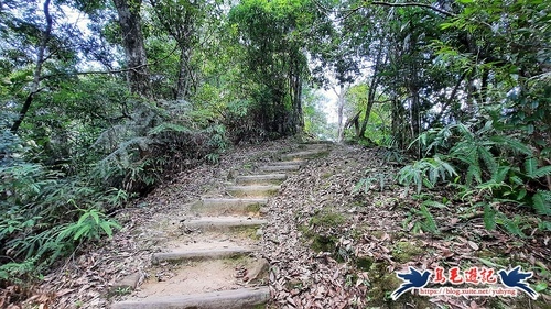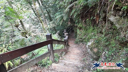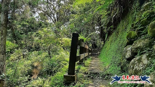 遮蔭率約有七八成,很適合夏天親子同行的大眾化路線,除上下坡路段設置園木梯或木棧階梯外,都維持自然原始的土石路。
