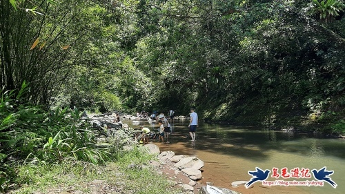 沿著步道行走,清涼的溪水淙淙,近在咫尺,不時可聽聞遊客嬉水歡笑聲此起彼落,還有陣陣烤肉香隨風飄來,讓人垂涎三尺。