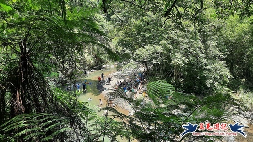 大人小孩都玩得開心,其樂融融,淙淙水聲之中有童稚的歡笑聲!