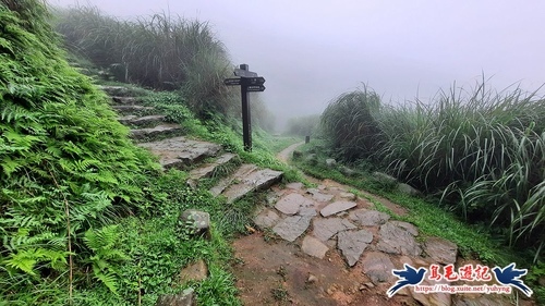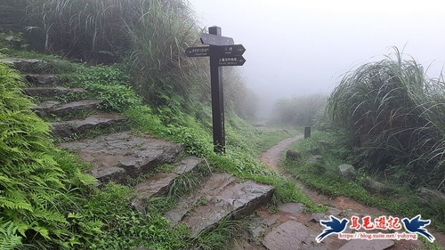 今日搭小15公車上擎天崗,天候不佳滿目白牆,計畫由上往下走魚路古道、日人路至八煙不流汗行程,經嶺頭喦土地公廟,