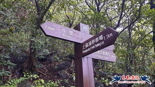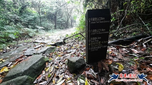 八煙登山口處入口有一綠峰休閒農場大石碑,依指標距擎天崗4.8公里,今日從擎天崗下來至此約1小時32分,續步出陽金公路,