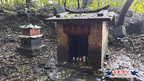 據說此廟是二百多年前由竹子山茶廠遷來,門聯刻有「嶺高真福地,頭舉有神靈」。