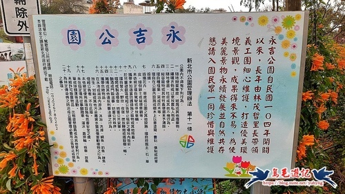 永吉公園自104年啟用至今,由里長帶領義工團細心維護,打造優美環境,入口處的告示牌也提醒來公園散步民眾共同珍惜花木。