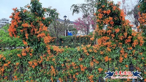進入公園後映入眼簾的就是滿眼金黃的炮仗花,在雨中更顯清新亮眼。