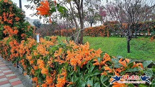 形成炮仗花牆和拱門,每年花期吸引不少人潮來賞花,還有很多兒童遊樂設施讓小朋友玩到不想回家,3D彩繪牆也是一大特色,