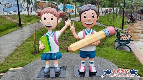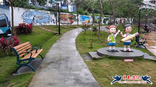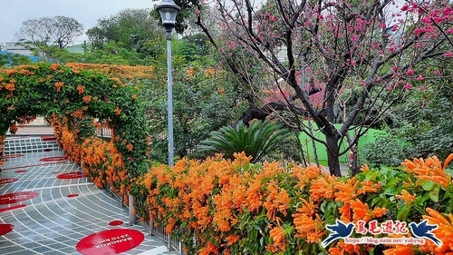 公園內炮仗花、櫻花美不勝收,還有可愛造型的動物及人偶雕塑,可以增進親子同遊的樂趣,