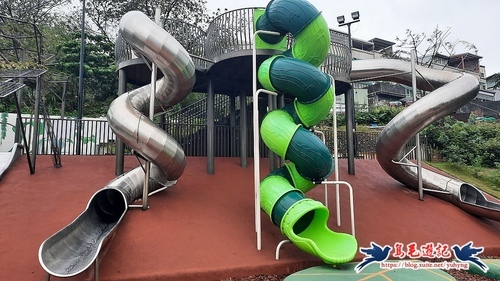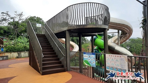 從樓梯爬上來觀景台,可回望整個公園景色,小朋友要挑戰旋轉溜滑梯也是從這裡滑下去喔...不知道滑到出口會暈頭轉向嗎?