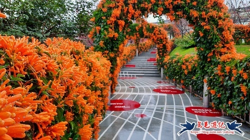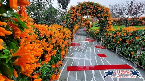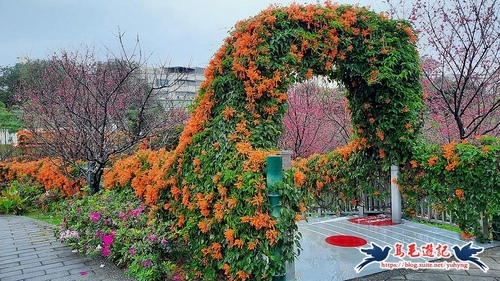 炮仗花海拱門隧道,由金黃色炮仗花圍繞著一道道拱門,看起來美麗又浪漫,或許遇到好天氣可碰到婚紗攝影來取景拍照呢...