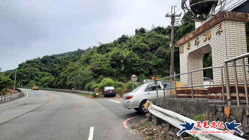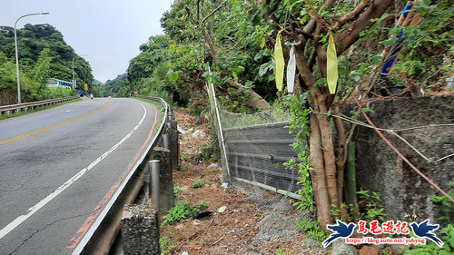 緩上坡經過國安路30巷社區大門,前方公路護欄外側進入,樹幹上有藍天隊「三角洲嶺」指標,