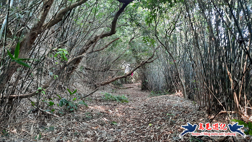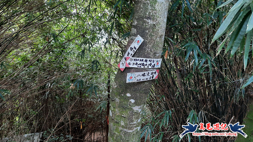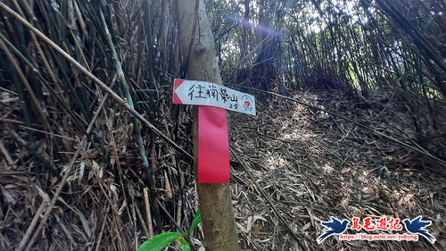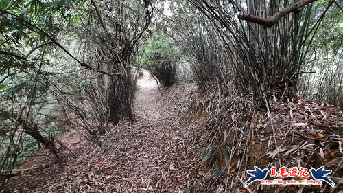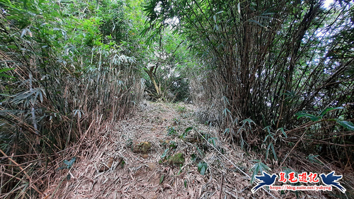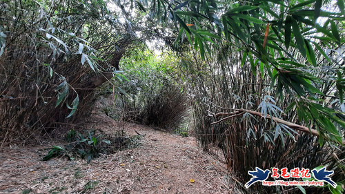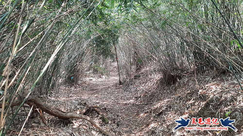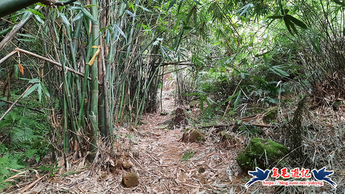 隨著寬大竹林路腰繞而行,約11分鐘至叉路,依指標及路條取右下方向,