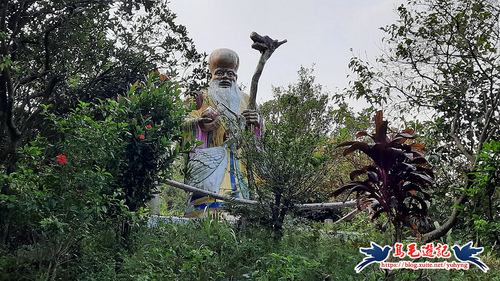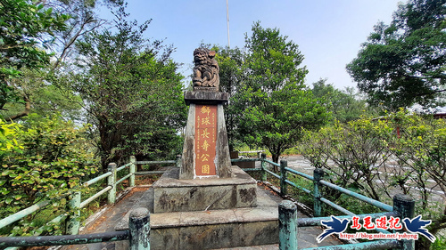 經過南極仙翁雕像,水泥階下來,通過綠草皮廣場,爬上獅球長壽公園重修紀念碑,旁有涼亭小歇片刻,然後前行過籃球場,