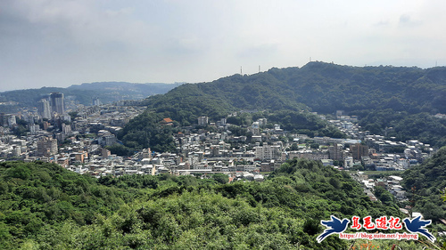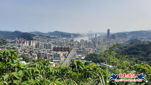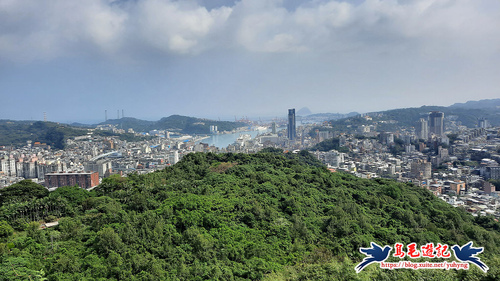 在東砲台山休息一下,環顧周遭基隆港市區周遭風光,往右側望去可見紅淡山一帶的基隆天際線,