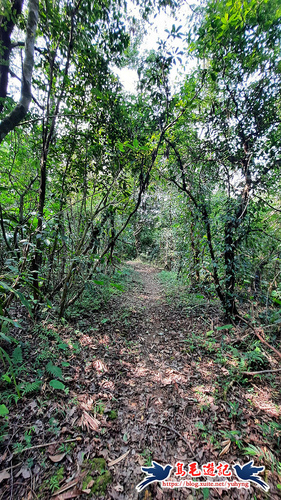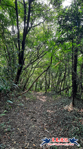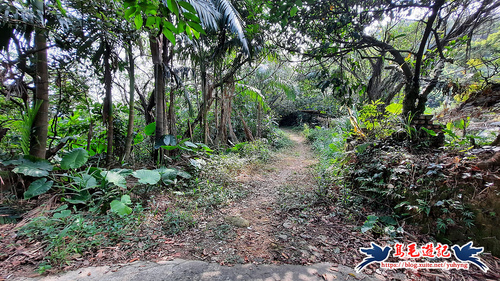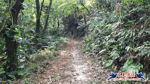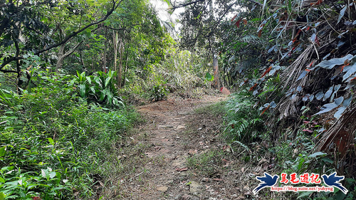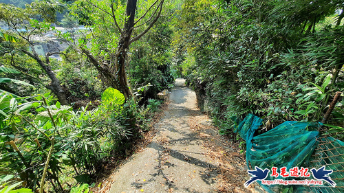 從獅球嶺砲台下來,階梯緩下坡至下方有水泥路,車道對面碎石路進入,樹林間山腰路還算清幽,遇Y形叉路,先取左,