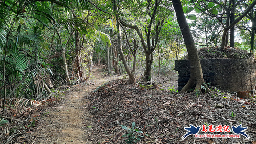 往北碉堡群指標過來,超優質的泥土路,走起來就是舒適爽快,榕樹根部整個包覆住的就是「北碉堡」。