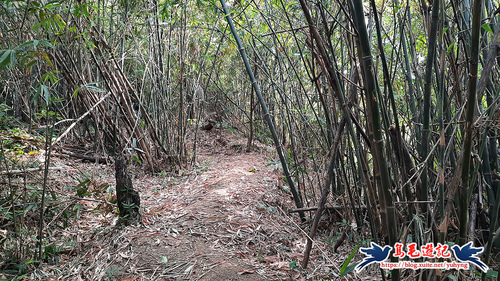 登山口進入後桂竹林區緩上坡,原始的泥土路山徑,接著便一路上爬,山谷間悶熱無風汗水狂流,到達上方小鞍部上稜左轉,
