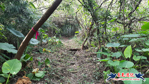途中有叉路右往「內石硬港古道」,看起來路況不是很好,續直行過來,有「紅淡山」指標(今日未計畫連走紅淡山),續前行,