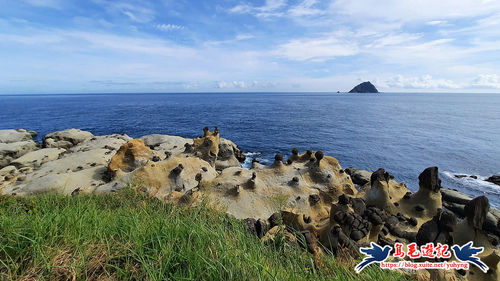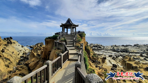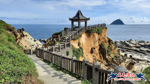 步道叉路轉往「等嶼亭」,可遠眺基隆嶼,在亭內可以看海、賞景、吹風,也是情侶談情說愛的好地方呢!大自然的鬼斧神工,
