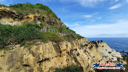 和平島公園東北側的環山步道,長期受風化與海潮侵蝕影響,砂岩地形呈現獨特風貌。散步在鄰岩面海的海景步道上心曠神怡,