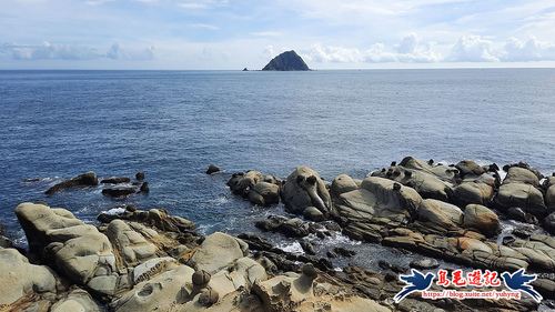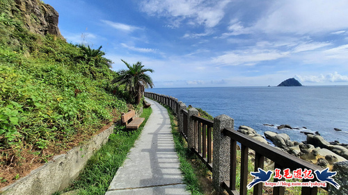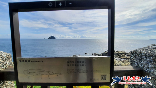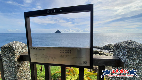 離開等嶼亭,返回環山步道續前行,途中有一「彈塗魚岩」觀景點,可框住遠處的基隆嶼,看起來似真又似假,也很好玩。