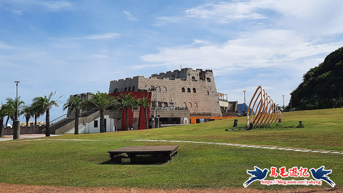 出示手機讓園方掃Qr-Code就可進入園區了。遠望綠色草原彼端城堡造型的遊客中心,仿自西班牙佔領時期的聖薩爾瓦多城。