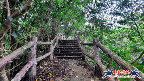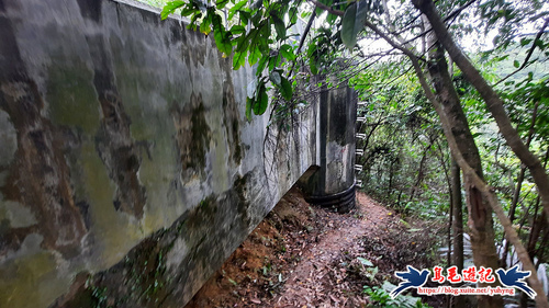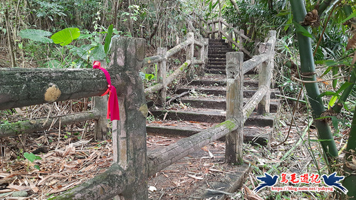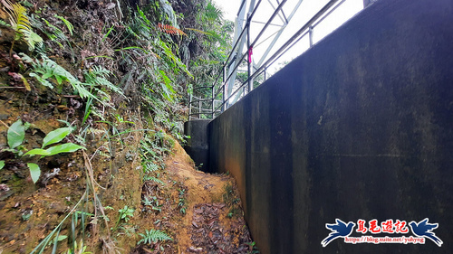 跨過護欄缺口沿水泥階緩上,這是最近剛清理完成...一條通往八堵山及三疊山的路徑。