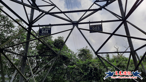 依照路線圖,往三疊山會經過3處電塔,第一處電塔編號分別是「八堵-暖暖線006」及「暖暖-基隆線003」。