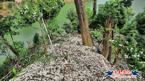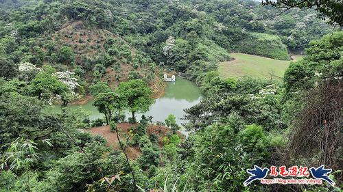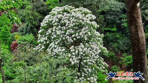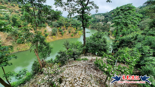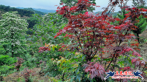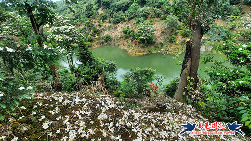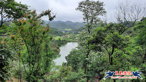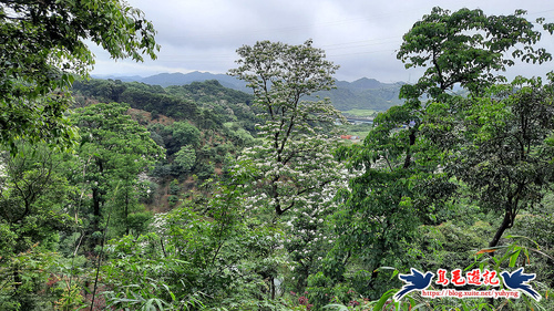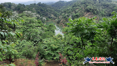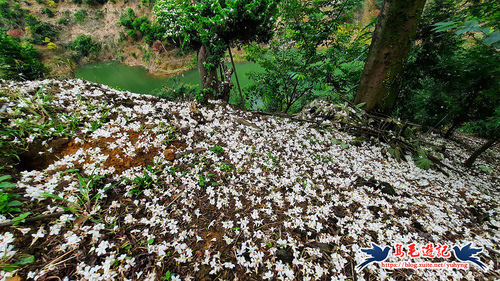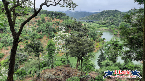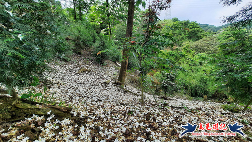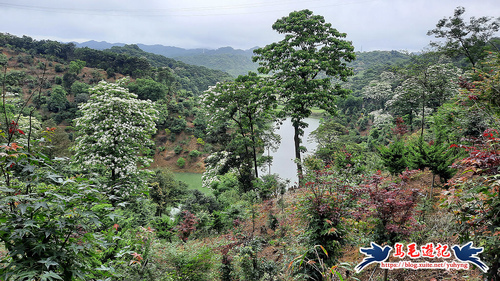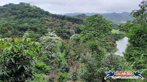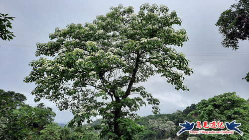 這處山坡地宛如世外桃源的秘境一般,依山傍水風景秀麗,到處可見滿樹油桐花,且油桐樹都很高大。