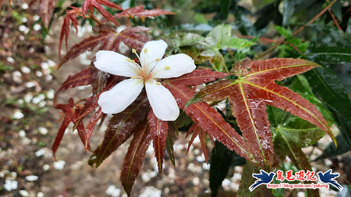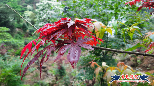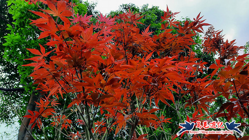 許多鮮紅的雞爪槭嫁接在青楓上,形成一棵樹有紅有綠的現象,各自保留了固有的血統,但如此人為雜交演變的後果不得而知,