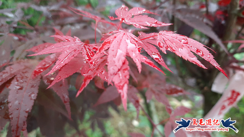 雞爪槭的葉片沾著雨珠,恰似美麗嬌顏眼眶含著淚水般楚楚可憐,步道旁不時可見穿山甲新洞土堆,與那大自然生生不息對話,