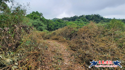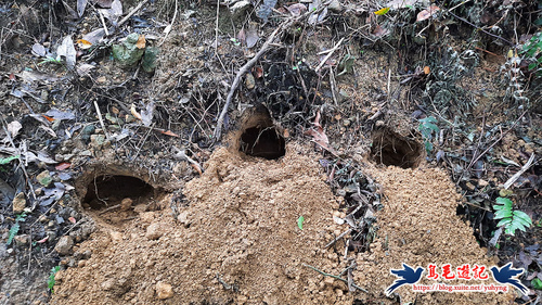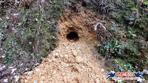 離開翠湖桐花山林,竹林之後泥土路陡上坡往三疊山方向,轉從電塔基座下方繞過,穿山甲連開三洞,數量應該不少喔。