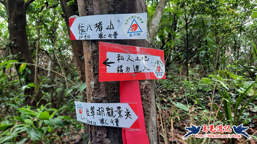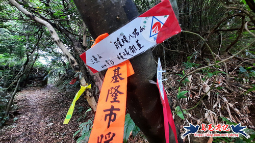 途中叉路,左下有倒樹是私人土地勿入,右上往八堵山,此處先取左後方一小段至翠湖觀景點。