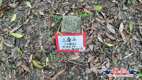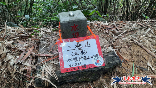 左路陡上,經山林投區,再攀繩陡上,小叉路右旁有三疊山北峰,海拔115公尺,水規所基石22號。