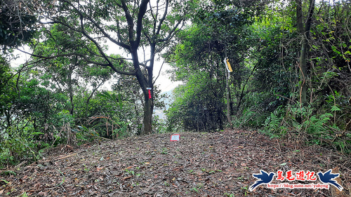 過竹林,再來一段拉繩長陡下至溪谷,然後沿溪行,再陡上,山路腰繞,續叉路取左,終攻上三疊山(三坑山),海拔142公尺,