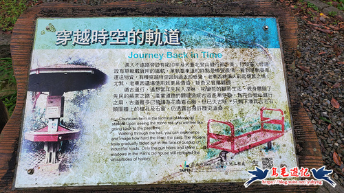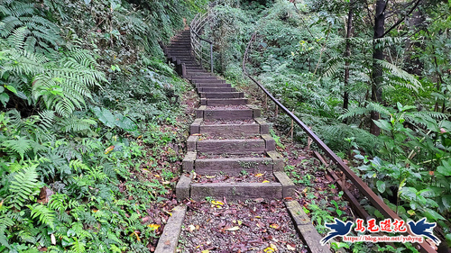經打印亭,此段步道旁有農場運送物資的單軌道,名為「穿越時空的軌道」,沿著軌道往上爬就到了椿萱農場。