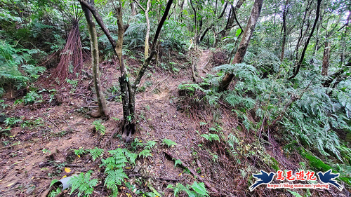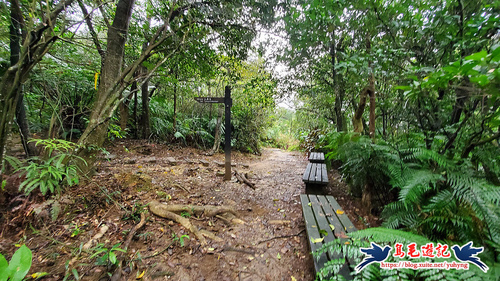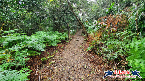 爬上稜線涼亭處稍作休息,此處復育的野百合尚未長出花苞,估計4.5月才有機會看到花影,取右往山豬窟尖,泥土路路況佳。