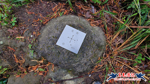 山路小徑先緩下坡經竹林,再一段上坡,不久就到了山豬窟尖西南峰(山豬窟山),海拔350公尺,北市不銹鋼基點編號「市 501」