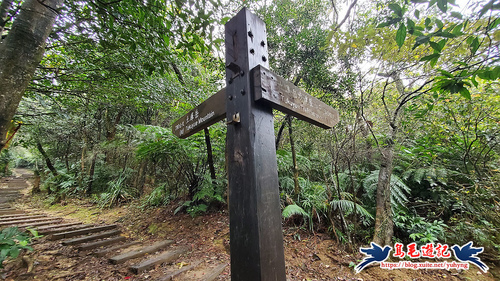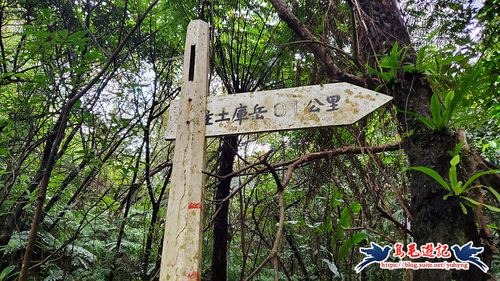 經過2個叉路口,取往土庫岳方向,記得剛從山豬窟尖下來叉路那面白底黑字指標,明明寫著「土庫岳0.1公里」,根本騙人呀。